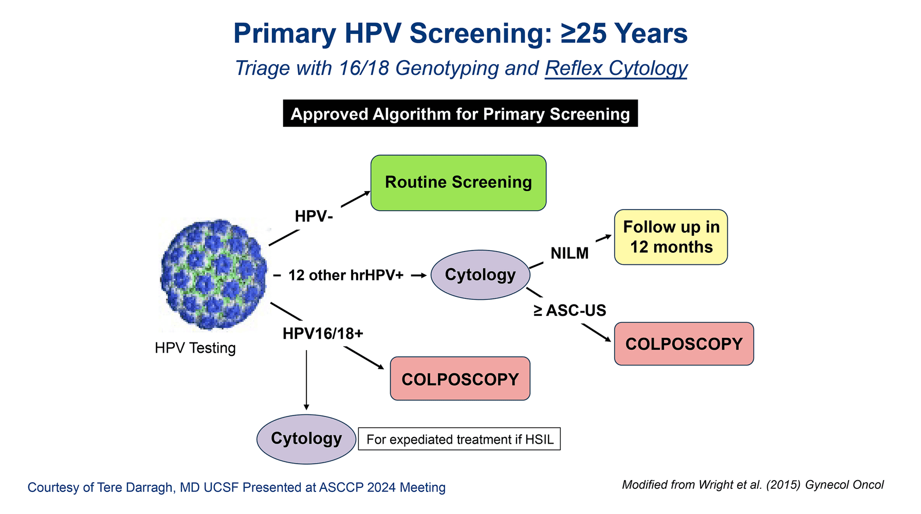 Figure 1. Algorithm for triage of care after primary HPV screening.