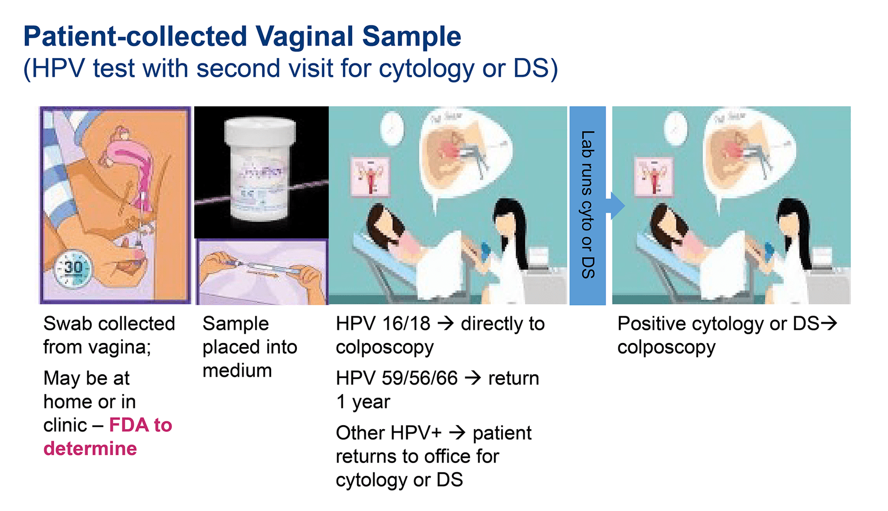 A critical unanswered question is whether individuals who self-sample in nontraditional settings can be successfully routed to appropriate follow-up care, such as colposcopy, after a positive test result. This information is essential for broader implementation of office-based and home-based self-sampling strategies.