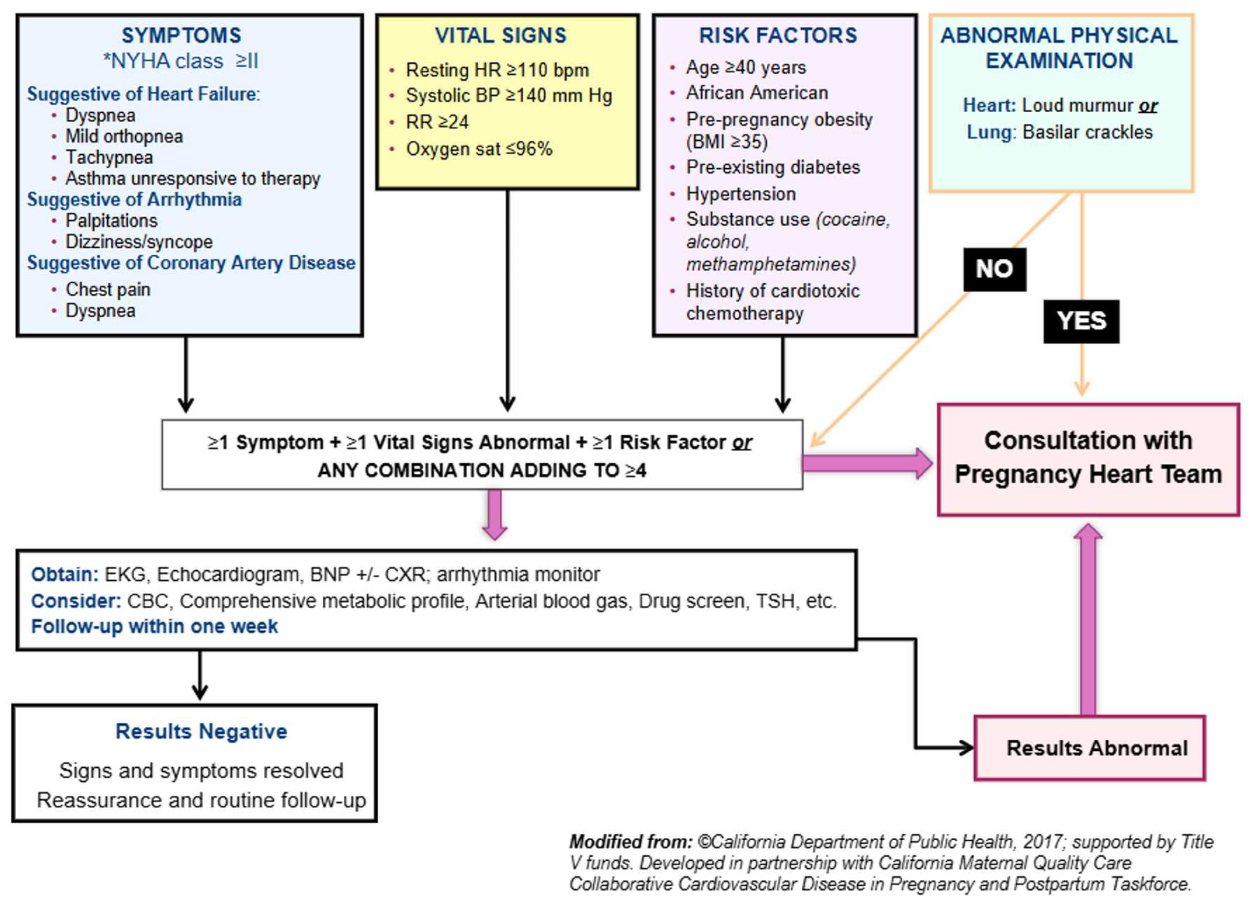 Figure 4. Algorithm for screening for cardiovascular disease in high-risk pregnant mothers at Montefiore Einstein.