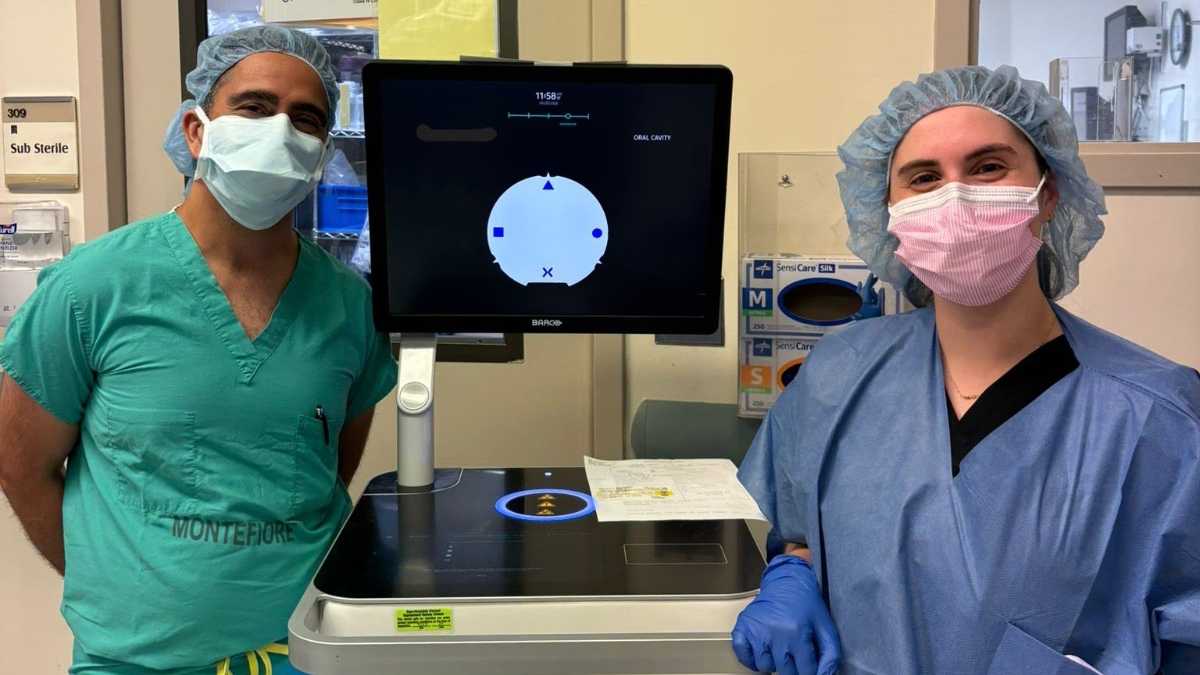 Montefiore Einstein is one of just two institutions in North America enrolling patients in a clinical trial to demonstrate the effectiveness of the Aura 10 PET-CT imager, a new intraoperative imaging technology. This groundbreaking technology enables surgeons to examine resected head and neck cancer tissue specimens in real time in the operating room, aiming to provide a more comprehensive, three-dimensional view of tissue margins to improve surgical accuracy and the chance of complete resection.